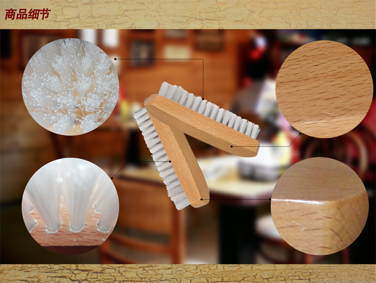 實木洗衣刷,櫸木刷紋理清晰,拋光處理大氣高端,貼合手型使用方便,尼龍刷絲每簇加固。洗衣高效更耐用。